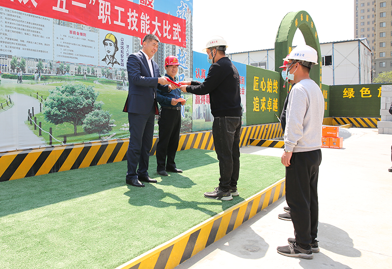 4月28日,集團(tuán)慶“五一”職工技能大比武活動(dòng)在滕投悅府項(xiàng)目部舉行。集團(tuán)副總經(jīng)理王慎禮宣布比賽規(guī)則和獲獎(jiǎng)名單,董事長(zhǎng)宗成偉為獲獎(jiǎng)員工頒獎(jiǎng)并作現(xiàn)場(chǎng)點(diǎn)評(píng)。
